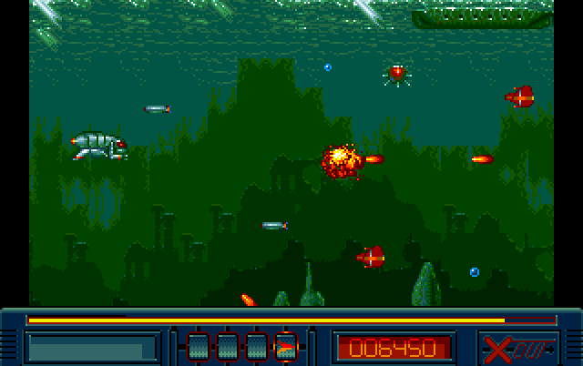 | __long_description | X-Out is a horizontally scrolling shoot-'em-up. Unlike most comparable games (e.g. R-Type), the game is not set in outer space or even in the air - instead, the fight between good and evil is underwater.