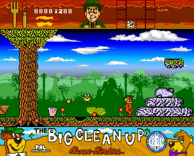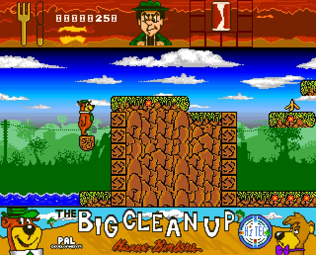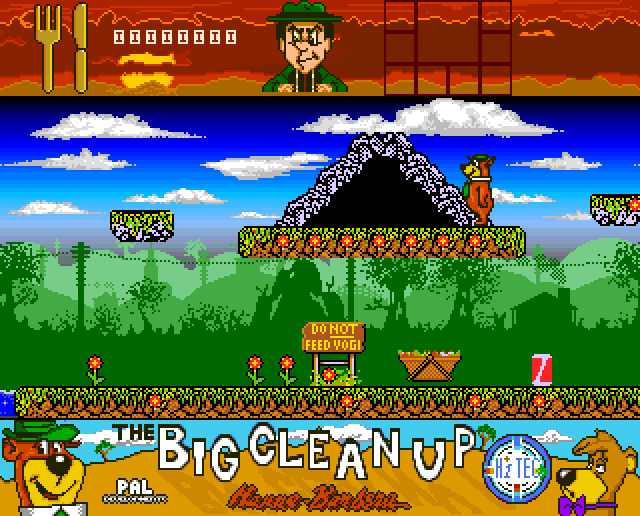 This licensed game sees Yogi Bear doing something constructive. Across five levels, he must locate or repair eight key items. After clearing Jellystone Park of litter, he must go underwater to fix its water supply. He must then explore a swamp to fix Ranger Smith's bike, find misplaced objects in a film studio, and finally reassemble the bed within his cave.