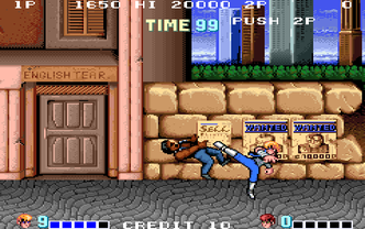 The player takes control of martial artist Billy Lee, or his twin brother Jimmy (also known as Hammer and Spike in the supplementary materials for the American arcade release), as they fight their way into the turf of the Black Warriors gang in order to rescue their common love interest Marian. The player character has a repertoire of martial art techniques which they can perform by using the joystick and three action buttons (kick, jump, and punch) individually or in combination. Techniques range from basic punches and kicks, to more elaborate manoeuvres like hair grabbing moves and elbow strikes. When playing with another player, one can assist the other by grabbing their partner's opponent from behind. Caution should be taken, though, as some enemies are able to do the same thing to the players. The player begins the game with a certain number of extra lives and a life gauge which depletes as the player takes hits. If the life gauge runs out or the time limit reaches zero, the player will lose a life.