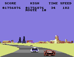 At last the amazing follow up to one of the most sucessful games of all time! This time you're at the wheel of the fabulous ferrari F40 and in a race against time in a bid to smash a stolen car racket - the only problem is the guys involved in the racket are corrupt policemen! As you go tearing through four states of America in search of the corrupt police. You will also have problems with the honest road cops who don't appreciate the sight of a Ferrari F40 crossing their state at 200 miles per hour... But, it ain't that easy... You must plan our route carefully from the maps of each state which are displayed on screen and which show the actual American freeways that you will travel on - be careful, the shortest routes aren't always the easiest as the sight and sound of a blue flashing light will soon make you relize. Your Ferrari is furnished with the latest radar which will enable you to detect police road blocks which may have been set up to catch you, therefore keep an eye on the freeway junctions as you may be forced to change your route! With 360 degree spins, car chases, realistic 3D road junctions, hills, road blocks and realistic mapped highways, not to mention superb 3D graphics. Crazy Cars II is here to set new standards in road racing. Don't just take our word, test drive a copy today! — Cassette cover