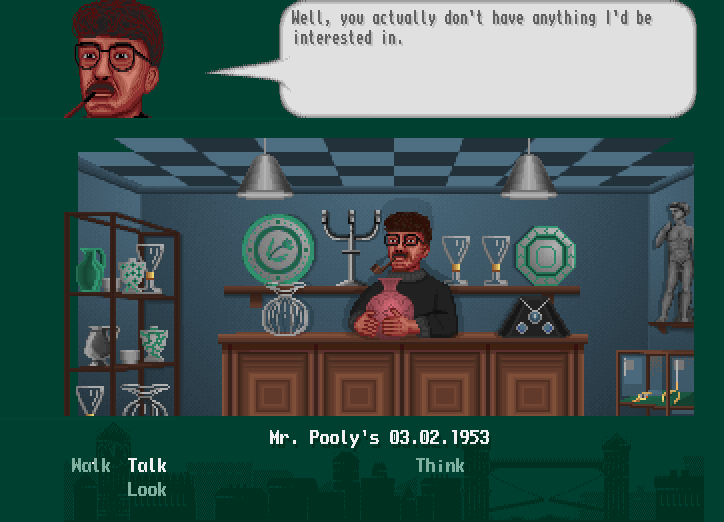An adventure game, assuming the identity of Matt Stuvysant, a burglar who is looking beyond just the clothes on his back and a hotel room on Holland Street,[5] the player is tasked with finding accomplices, scouting potential targets, and plotting plans of burglary, down to the finest detail. Featuring the archetypal point-and-click interface during investigations, engaging in planning a job would alter the controls to include keyboard, using it to control the planned movements of the personnel.