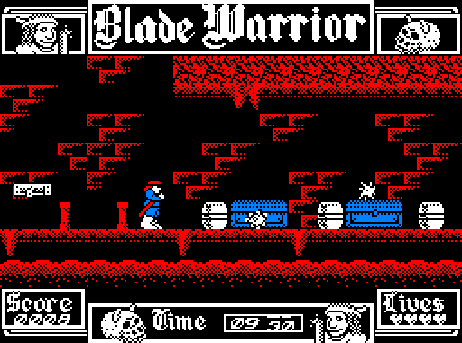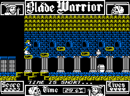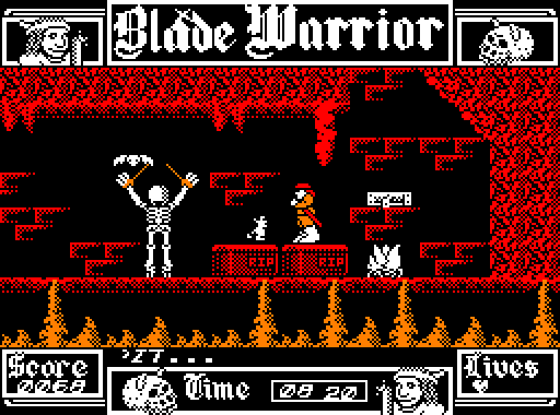 'POWER BLADE' shudders in your hands as the DEATH DEMON appears... with one mighty psionic blow, he shatters the magic sword... Strike now and slay the evil force who challenges you, the last BLADE WARRIOR! — Cassette cover