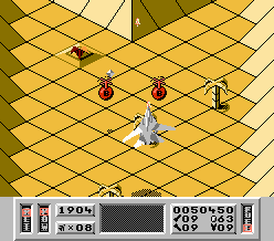 The game features eight missions which are broken up into different phases. One phase is a vertically scrolling shoot-'em-up which has the action viewed from a top down perspective with a 3D landscape. Players get to destroy enemy installations and bases during this phase. Another phase has gameplay similar to After Burner where the player has to take out enemy aircraft. Another phase has the player carefully docking their aircraft into a space station. The planes weaponry can be upgraded or refilled at these space stations by spending the credits the player has earned by defeating enemy aircraft. After successfully completing all the missions the player has to destroy the final alien space station.