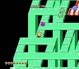 Pac-Mania is a variation on the game Pac-Man. You need to guide Pac-Man around a maze and eat all of the dots on the board in order to proceed on to the next round. Numerous, multi-colored ghosts also roam the maze trying to stop you. If you eat one of the power pellets in the maze, the ghosts will temporarily turn blue and run from you. Pac-Man can earn bonus points by eating the ghosts when they are in this state. The maze is now shown in isometric perspective and is larger than screen which will scroll to follow the action. To help get out of tight spots, Pac-Man now has the ability to jump. But be careful, because some of the ghosts have learned this trick as well and you could end up in a mid air collision!
