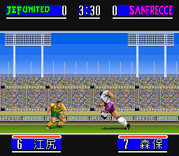 J-League Soccer: Prime Goal is a soccer game based on the J-League, Japan's premier soccer league. It uses a horizontally scrolling soccer pitch that occasionally cuts to cinematic animations for challenges and after a goal is scored. The player has the choice of ten teams in the J League, each with the real-life members of each team (at the time).