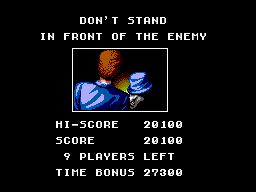 The gameplay involves you having to shoot all the mafia henchmen before being able to fight the level boss. The game is view as a 1st person/3rd person hybrid where you are shooting in first person but you can see the outline of your character. To avoid getting shot you have to make sure you are not in front of an enemy as when you are your outline turns red and you are vulnerable. You can duck for cover but you automatically pop up after a few seconds so timing is everything. There is also a time limit for each level and more enemies to kill as the game progresses.