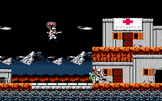 This version of Bionic Commando is loosely based on the original arcade game and its computer ports, having different levels and plot. The protagonist is a soldier with a bionic arm that extends and contracts. His arm allows him to grab on to fixed objects to swing around and climb up platforms, which is the only way to do so due to the lack of a jumping ability. The arm also grabs opponents and pulls them towards the player character.