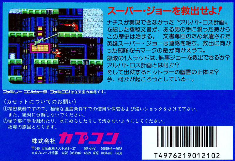| __long_description | At some point during the 1980's the world has become a stage of battle between the Federation and the Empire. The latter sees itself as the successor state to the malevolent Badds, also known as the Nazz. One day, the Federation discovers that the Imperial leader Generalissimo Killt decides to complete an unfinished project codenamed "Albatros" and started by the Badds. The Federation sends their hero Super Joe to stop the Empire's plans, but he is captured. Ladd Spencer, a member of the special FF Battalion, is dispatched to rescue Super Joe and uncover the enemy's secrets.