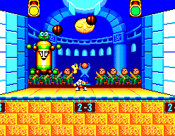 Rather than the traditional power-ups, Dynamite Headdy enables you to swap your head for different kinds – such as heads that heal you or heads that stick on to walls. You use your head in order to climb up on platforms as well, as you can grab hold of things with it, and on certain stages of the Mega Drive/Genesis version it is used to turn the game into a side-scrolling shooter, as you gain a propeller, jet, or bird head. Basically, Dynamite Headdy is just a traditional platformer at heart.