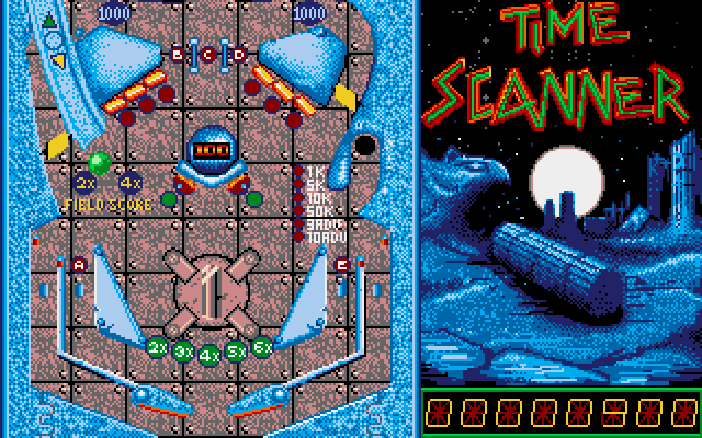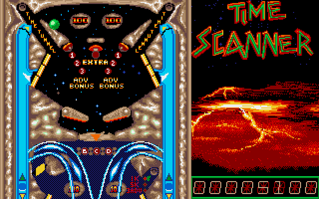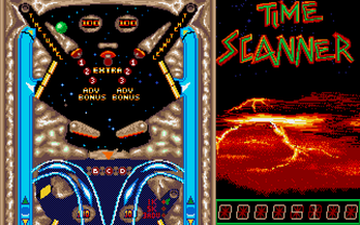 Time Scanner is a pinball game. As usual, the goal is to keep the ball in the game by bouncing it back with the paddles. Hitting bumpers and other obstacles rewards points and completing a table requires mastering certain objectives which depend on the table on hand. Every table is divided into two parts with their own paddles: the game only scrolls if the ball goes down. The four tables are: