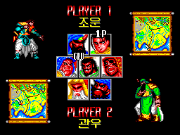 Sangokushi III is an unlicensed fighting game for the Sega Master System released in South Korea by Game Line in 1994. It's based on the Taiwanese game series Sango Fighter (Sangokushi). Interestingly, the programmer who worked on this game, Lee Sanghun, also worked on "GP Rider" for the Game Gear, a licensed title.