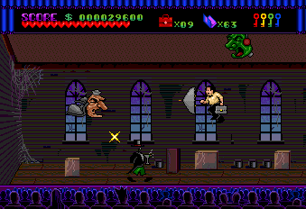 Based on the Addams Family movie, this game is quite different from the other Addams Family variants. The player is cast in the role of Tully Alford, the crooked lawyer of the Addams family. He finds out that somewhere in the family mansion, a great treasure is stored in a vault. He decides to venture into the mansion and retrieve the treasure. Naturally, this is going to be anything but easy, as the insane Addams family members and a legion of ghosts and monsters are there to make sure the lawyer fails...