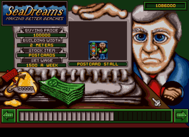 Hillsea Lido puts you in charge of seaside amusement facilities loosely based around a beach near Vulcan's Hampshire base. Each of the sites is rented out to various small businesses, in return for a cut of their profits. You can put various events on, and must advertise them locally. The area must be kept clean and tidy by hiring, and facilities and food available. The game's structure is day-by-day, with different tasks and opportunities on each of them - this is the only major difference from Bullfrog's Theme Park.