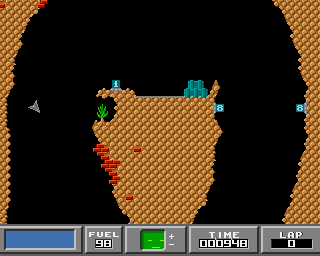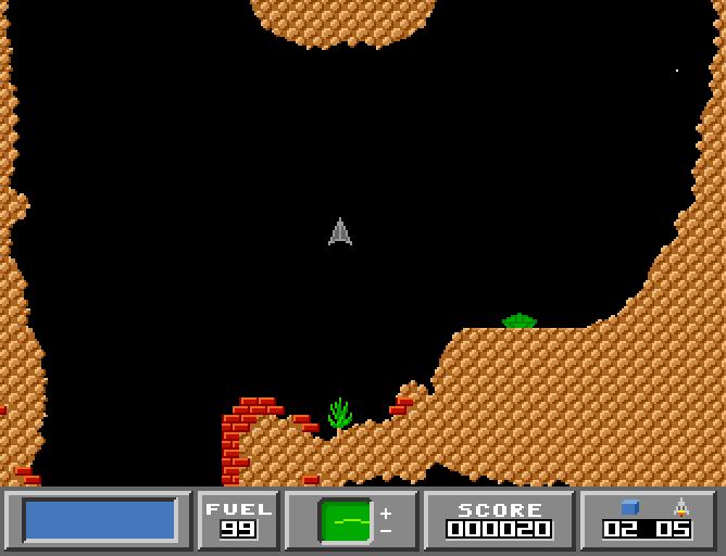 Gravity Force is a game of dexterity. Your task is to pilot a small spaceship through a series of mazes and collect various cargo containers on your way. Your spaceship obeys the laws of gravity. You have to use a single thruster to avoid collision with walls or the ground. Various types of enemies will try to hinder your cargo salvage missions.
