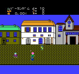 Unlike its sequels, which are more traditional Famicom text adventures, Hakushaku Reijou Yuukai Jiken is primarily an action game: Sherlock travels to various cities across the United Kingdom searching for clues behind the kidnapping of the eponymous Count's daughter. In each location, Sherlock can walk around the city and investigate suspicious locations, such as sewers and buildings. Defeating the various henchmen (or regular citizenry) roaming around the cities and sub-locations will provide Sherlock with the funds necessary to move onto the next city via the railway stations. The ultimate goal is to pinpoint where the culprit is hiding with enough clues and confront them.
