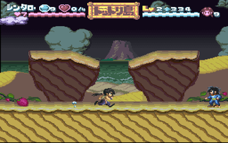 The game is a mix of brawling and platforming. Shintaro has a quick punch move and a charged-up beam attack, and fights various sub-bosses as he makes his way through levels. He'll occasionally meet characters from the manga as well, including Tanno and Itou, who are a transvestite fish and an effeminate pink snail respectively.