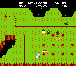 The official sequel to Namco's coin op classic Dig Dug. It was originally released in arcades and later ported to the NES and Famicom Disk System. It is a major departure from the original and is often seen as being far inferior.