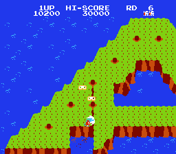 | __long_description | It is Dig Dug's job to protect 72 different tropical islands from his arch rivals, Pooka and the fire breathing Fygar. Played from an overhead point of view, Dig Dug now has two weapons at his disposal; the first is an air pump and the second is a drill. The pump can be used to inflate and destroy the enemies the same as in the original Dig Dug. At various locations on the islands are stakes, and when the drill is used near a stake a crack will form. If enough cracks become connected that section of the island will fall into the ocean, hopefully taking an enemy (and not Dig Dug!) with it. When all of the Pookas and Fygars have been destroyed, the game moves on to the next, more difficult level. |