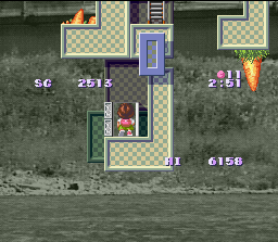 The game's ending is contingent on the amount of total time taken to beat the fiftieth stage. Players can skip ahead by finding harder-to-reach alternate "warp" exits to shave off time, and beating the game within a strict time limit leads to a better ending.