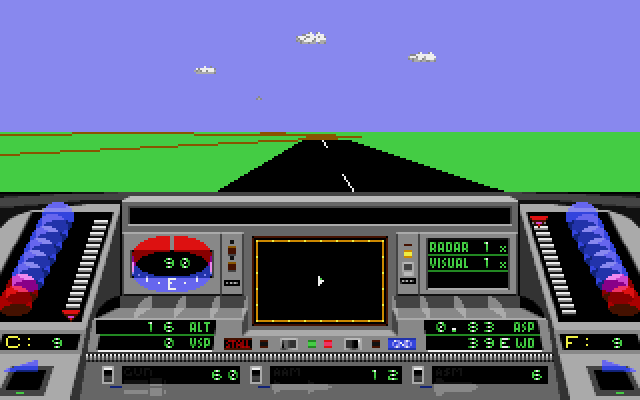 You can choose to be an existing pilot or to create a new one. You can choose between 2 levels of difficulty: beginner (less enemy attacks) or expert (the most dangerous). The weather will affect the mission. The good weather will be great for training, and the stormy will be dangerous but great for attacks, as you can hide into the clouds and approach the enemy unnoticed. You'll have a copilot that will help you telling what's going on every moment. You can avoid missiles using your skills, using chaff or... if you can't, you can use your parachute!