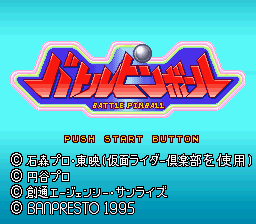 Battle Pinball is a multi-table pinball game exclusive for the Super Famicom and part of Banpresto's "Compati Hero Series" that brings together the licenses for Ultraman, Kamen Rider and Gundam. As with other games in the series, all the characters have been super-deformed to normalize the heights of the differently-sized heroes.