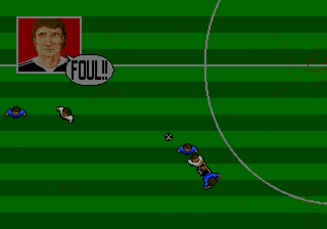 The player either controls the athlete in ball possession or, when in defense, the one which is nearest. When shooting, the power of the shot depends on how long the button was pressed and the direction changes with the joystick movement, e.g. moving against the walking direction results in a overhead kick.