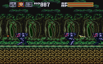 Before every mission, one cyborg is assigned leader and two more can be selected by the player. Only one cyborg can be controlled at a time, but it is possible to switch between cyborgs at any time. All cyborgs share the same HP and SP-bar. Throughout the levels, experience points can be collected and used to increase a cyborg's attributes after a completed mission.