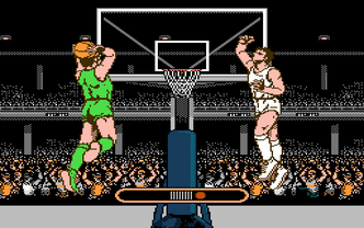 The point of view is horizontal for the most part. Occasionally, a close-up action scene is shown on plays such as slam dunks and free throws. There are also two different play modes, "Tournament" and "One Game." Players can play alone, against a friend, or with a friend against the computer. There is also a "Watch" mode where players can view games being played by the computer against itself.