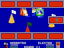 The game allows a player to play alone, or it allows 2-player competitive play. Further, it also allows human vs. computer competition, where the computer player is named "Electro".