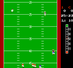 Since the game is concerned with scoring touchdowns, in the 1 player game the player is always on offense. Players can score points for completing passes and for gaining yards by either rushing or passing. Scoring a touchdown also adds to the players score, as does any remaining time on the clock after the touchdown is scored. Also after a touchdown, the player can add on to their score by kicking an extra point.