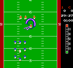 Since the game is concerned with scoring touchdowns, in the 1 player game the player is always on offense. Players can score points for completing passes and for gaining yards by either rushing or passing. Scoring a touchdown also adds to the players score, as does any remaining time on the clock after the touchdown is scored. Also after a touchdown, the player can add on to their score by kicking an extra point.