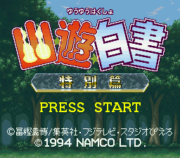 YuYu Hakusho: Tokubetsu Hen ("YuYu Hakusho: Special Edition") is a fighter game for the Super Famicom. Rather than controlling the character directly with the D-pad and buttons, the players charge attacks and unleash them at the right amount of power. Combat is depicted as a series of dramatic cutaways as each fighter launches their attacks and the other tries to defend or evade them.