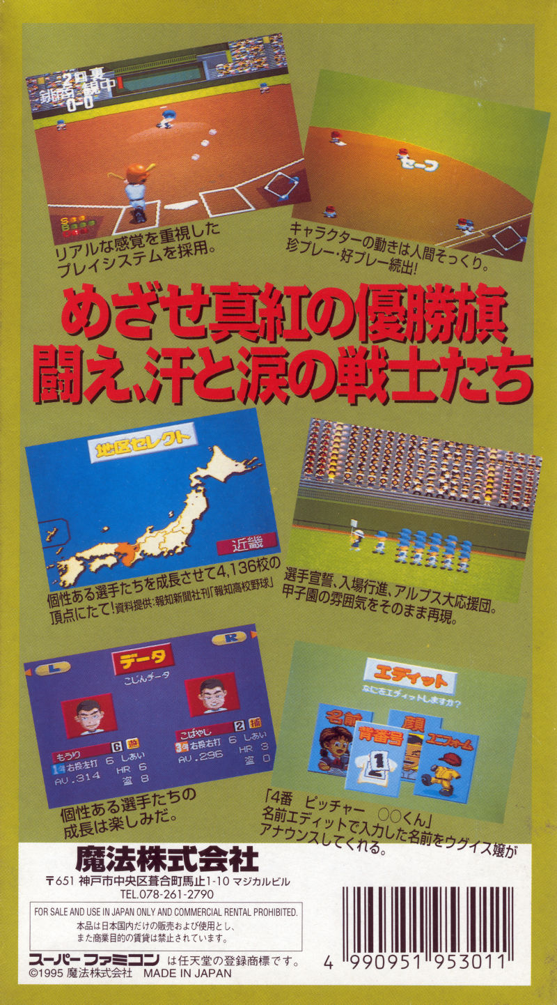 | description | Baseball sim published by Magical Company in 1995. High school teams across Japan compete to reach the tournament final in Koushien. |