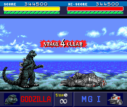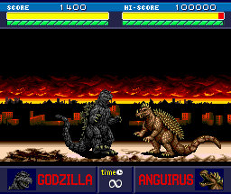 This interpretation of the famous giant monster from the Japanese cinematic industry takes form of a fighting game, only instead of the usual brave martial artists the players control horrifying monsters from the traditional Toho lineage: the titular beast itself, Rodan, Anguirus, Ghidorah, and others. The game has two modes: Normal and Vs. The latter is essentially a two-player mode, which allows the players to engage in giant monster battles in a variety of scenarios. Most of the monsters, however, are locked in the Vs. mode before the player has completed the Normal mode.