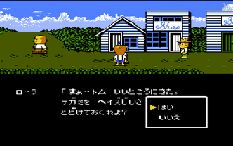 When entering battle mode, the game shifts to a third-person view behind Tom's party. The player can issue commands such as Fight, Item, and Run to each of the characters in the party and these actions will occur in turn. Battles that are won earn the participating characters experience points. These experience points can be allocated to increase specific stats of characters. Players can accumulate new items for use in battle but never have to deal with equipping characters.
