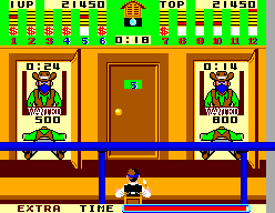 If a bandit appears behind a door, you have only a few seconds to shoot him before he shoots you. If you shoot him too early (i.e. before he sticks his gun out at you), it is considered unfair and gives very little score, but if you're too late, he'll shoot you and you lose one of your three lives. Sometimes a bandit will stick dynamite on one of the doors. You must then shoot the dynamite to get rid of it. If you take too long, the bomb explodes (even if it's offscreen) and you lose a life.