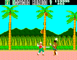 There are six scenes in the game. During his travels, Jim will explore villages, fight his way on board ships, venture through caves, and wander around tropical islands. In each of these six scenes, Jim must use his sword to kill cats, rats, bats, witches, skeletons, and other creatures that are waiting for him. When Jim touches, or is shot at, by a creature, he loses one of his lives, but when he kills a creature, he can collect some gold that they leave behind, which can be used to buy items from shops. However, rather than getting gold, enemies leave behind some gold containing one of the letters that spell the word "CAPTAIN SILVER". If Jim manages to get all of these letters, he will be awarded an extra life.