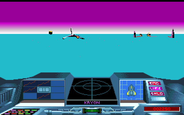 Nova 9 is the sequel to Dynamix's Stellar 7, a futuristic "tank" shooter, and features similar gameplay. Played from a first person perspective in the cockpit of your tank, the goal is to destroy all of the various enemies found on nine planets. John Alex's tank, the Raven II, is equipped with various weaponry and a long range scanner to help in the mission. It is also equipped with a cloaking device for emergencies. Additional power-ups such as pickup energy and enhancement modules can be either beamed in or "salvaged" from the enemy wreckage.