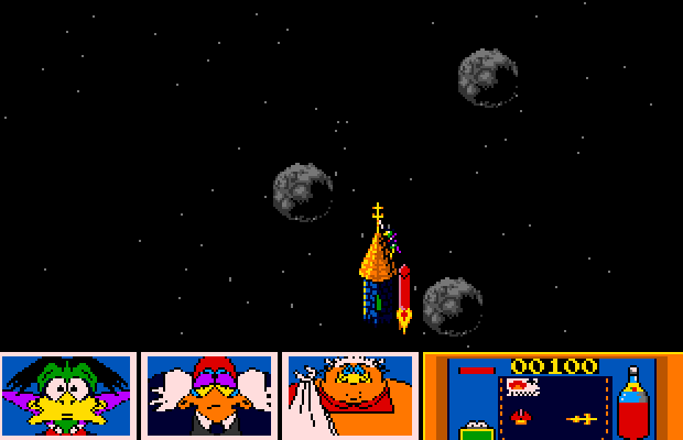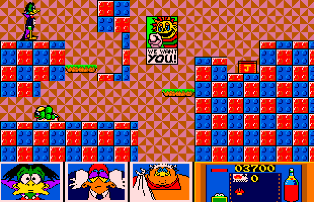 Oh dear though it's planet Cute – Yuk! Duckula hates cute things, and he soon realises that if he and his pals stay on this planet for any length of time, they too will become... Cute... aagghh! All the cuties dollies and teddybears want to give our pal a big wet kiss (Blah) to speed up the cuteness process. There's only one thing for it. Duckula, Igor and Nanny have got to get off this planet and quick, but they have lost the lightning conductor in the crash landing and they will need this to escape. Can Tremendous Terence help, will they get away, it's up to you.