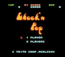 Chack'n Pop is considered a predecessor of Bubble Bobble. It is a platform game where a roundish yellow creature, named Chack'n, must fight against Monstas and Mightas in order to reclaim hearts that were stolen during a romantic encounter with Miss Chack'n.