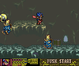 This game sees the four main characters - Ultraman, Kamen Rider, SD Knight Gundam and Fighter Roar - fight their usual enemies on a Wild West planet. The levels are split between 2D side-scrolling platformer/action stages and third-person shooter stages that resemble those from Natsume's popular Wild Guns.