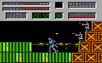 Cyber Shinobi is a one-player game that consists of six rounds. You need to fight ninjas that get in your way using your fists and legs. You can also defeat them using special attacks and ninjitsu. Power-ups can be collected along the way, which will give you more shots, ninjitsu, power, and life. A boss needs to be defeated at the end of the round.