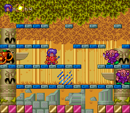 Like in Bubble Bobble, the goal is to eliminate all the enemies on screen by turning them into bubbles; this is achieved by shooting projectiles at them from a magic wand. These bubbles can be destroyed with the wand or thrown at each other for a more effective result. Each monster, however, turns into a bubble of a particular color, and making two bubbles of the same color touch each other releases the trapped monsters. If it takes the player too long to kill all the enemies, tougher ones will appear on screen. The game consists of six worlds, each comprising nine regular and one boss stage.