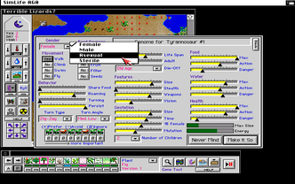 The basic concept of Sim Life AGA is to indeed simulate life. You've got a large world map made of rectangular blocks. You can then populate this world map with tens, even hundreds of animals and plants, and see how they live their entire lives in front of your eyes. Sounds boring? It might be, if that was all there is. But Sim Life also simulates evolution and mutations, so the lifeforms' genome changes as time goes by. As well as that, you can make up your own lifeforms.