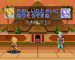 The game allows you to take part either in a 8 player martial arts tournament with an eliminatory system or to make single combats against the CPU or another player. This makes Super Butōden 3 the only game of the series without a Story Mode. It can be explained by the fact that when the game was released while the Buu saga was still on a very early stage in Japanese TV. |