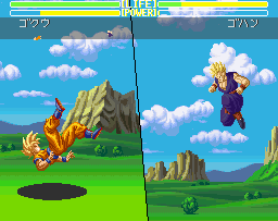 Split screen mode is maintained, but now you can now fly up or down while on the same screen as your opponent. You can also struggle with your rival pushing with your arms together to test your button smashing abilities, or execute new Meteor Combos. Scenarios will also be different (mainly based on Buu saga) and will include alternative versions of themselves with different times of the day as well.