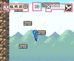 Nintama Rantarou ("Ninja Boy Rantarou") is a platformer for the Super Famicom and the first of five games on the system to be based on the 1993 anime Nintama Rantarou, which was adapted from the manga Rakudai Ninja Rantarou, and features the lighthearted adventures of a bespectacled boy and his two best friends as they try to graduate ninja school.