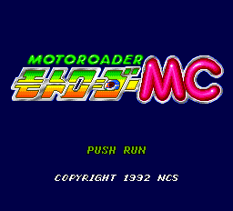 Motoroader MC is, like its predecessor, an overhead racing game with car combat. Gameplay mechanics, however, are different: players can only control regular-looking cars, which are presented as small sprites. Each car is equipped with two types of firearms, which can be used against opponents to win the race. Every course only occupies one screen, and the player has to complete laps faster than AI-controlled cars or race against time. Multiplayer (for two or four players) is also available. Time attack mode allows the player to select any course from twenty-five available ones, thematically grouped in five categories: Circuit (resembling racing tracks), City (urban locations), Nature (field, beach, desert, etc.), Märchen (colorful fairy tale-like courses), and Special (unorthodox designs, e.g. a giant ape overlooking a road). Courses usually include various hazards that slow down or trap cars, as well as turbo fields that speed them up. Some courses also have entrances and exits, which teleport cars to another location on the screen.