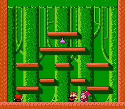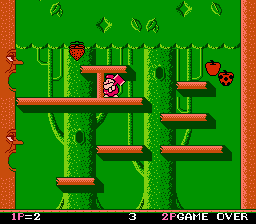 In this game, you play a bearded dwarf whose girlfriend has been kidnapped and taken away to the dragon's castle, and in order to rescue her, you must defeat enemies with your mallet. Once you do, you can pick them up and throw them at other enemies, and collect the fruit that they leave behind. When you have defeated all enemies, you proceed onwards to the next round. If you take too long to complete a level, a winged devil will appear who will try to kill you while flying around the screen.