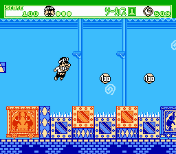 Heisei Tensai Bakabon ("Heisei-period Genius Bakabon") is a platformer and the second game based on the Tensai Bakabon manga about an idiot boy and his lazy and even dumber father; a sort of proto-Simpsons slice of life comedy manga. The player assumes the role of the father, usually referred to only as Bakabon's Papa, as he makes his way through various capers through 2D side-scrolling platformer stages.